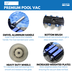 Aquatix Pro Pool Vacuum Head, 22" Extra Large Commercial Grade, 10 Weighted Plates, 2 x Hose Adapter, Aluminium Handle, Stainless Steel Balls, Flex Swivel Swimming Pool Head with Bottom Brush Aquatix Pro Pool Vacuum Head, 22" Extra Large Commercial Grade, 10 Weighted Plates, 2 x Hose Adapter, Aluminium Handle, Stainless Steel Balls, Flex Swivel Swimming Pool Head with Bottom Brush